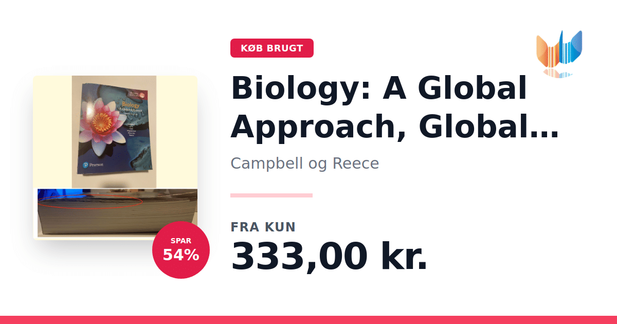 Lige nu kan du købe "Biology: A Global Approach, Global Edition" af Campbell og Reece til kun 333,00 kr. Du sparer hele 54% af nyprisen! Bogen du ser her er brugt, og i god stand. Vi har i øjeblikket 2 eksemplarer til salg af "Biology: A Global Approach, Global Edition", så husk at se de forskellige udgaver.