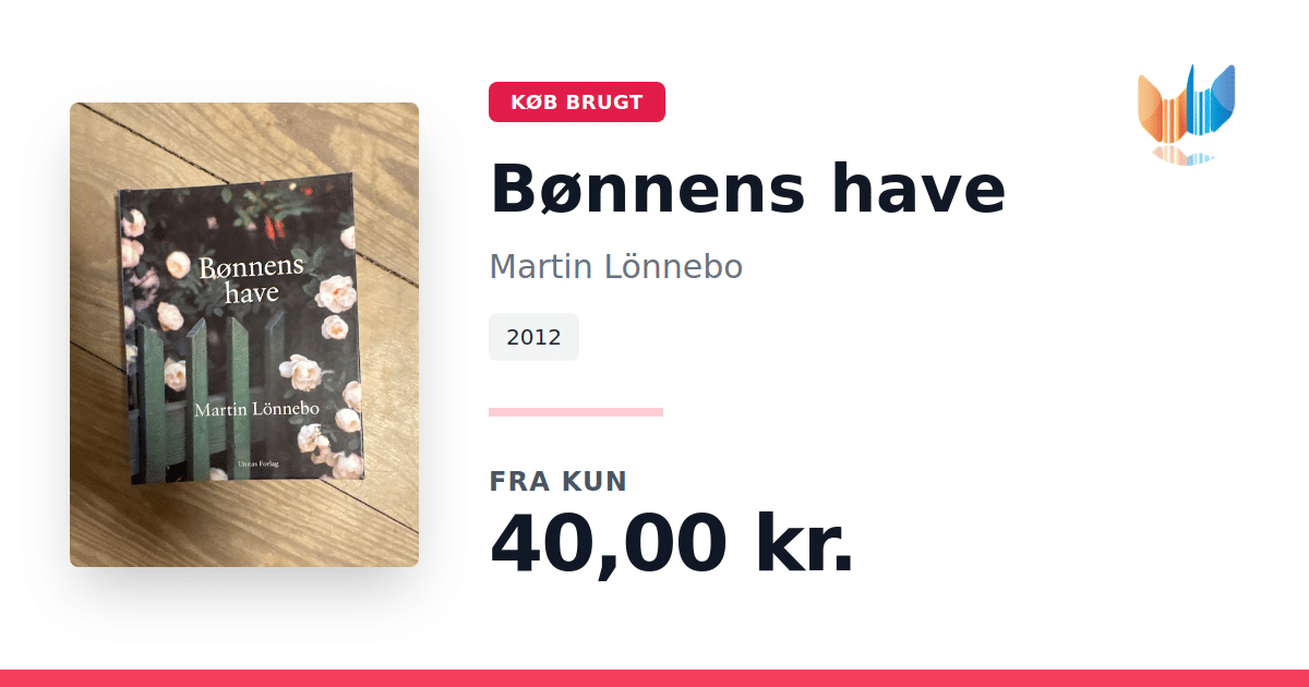 Lige nu kan du købe "Bønnens have" af Martin Lönnebo til kun 40,00 kr. Bogen du ser her er brugt, og i perfekt stand. Vi har i øjeblikket kun et enkelt eksemplar til salg af "Bønnens have", så slå til mens du kan!