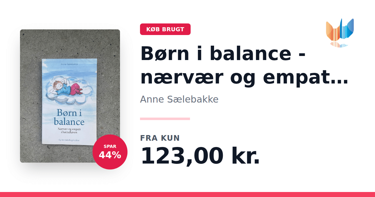Lige nu kan du købe "Børn i balance - nærvær og empati i børnehaven" af Anne Sælebakke til kun 123,00 kr. Du sparer hele 44% af nyprisen! Bogen du ser her er brugt, og i god stand. Vi har i øjeblikket kun et enkelt eksemplar til salg af "Børn i balance - nærvær og empati i børnehaven", så slå til mens du kan!