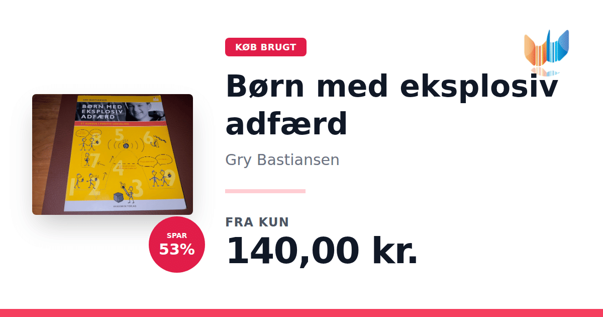 Lige nu kan du købe "Børn med eksplosiv adfærd" af Gry Bastiansen til kun 140,00 kr. Du sparer hele 53% af nyprisen! Bogen du ser her er brugt, og i perfekt stand. Vi har i øjeblikket kun et enkelt eksemplar til salg af "Børn med eksplosiv adfærd", så slå til mens du kan!