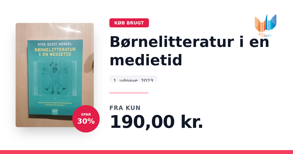 Lige nu kan du købe "Børnelitteratur i en medietid" til kun 190,00 kr. Du sparer hele 30% af nyprisen! Bogen du ser her er brugt, og i perfekt stand. Vi har i øjeblikket kun et enkelt eksemplar til salg af "Børnelitteratur i en medietid", så slå til mens du kan!