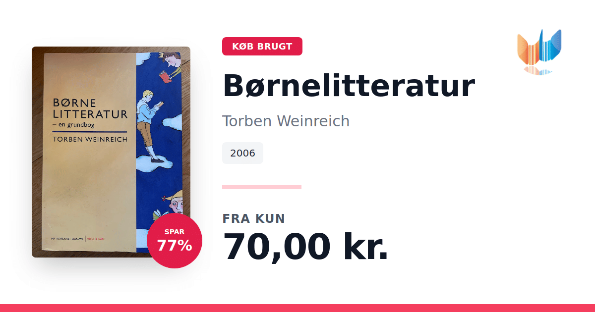 Lige nu kan du købe "Børnelitteratur" af Torben Weinreich til kun 70,00 kr. Du sparer hele 77% af nyprisen! Bogen du ser her er brugt, og i perfekt stand. Vi har i øjeblikket 3 eksemplarer til salg af "Børnelitteratur", så husk at se de forskellige udgaver.