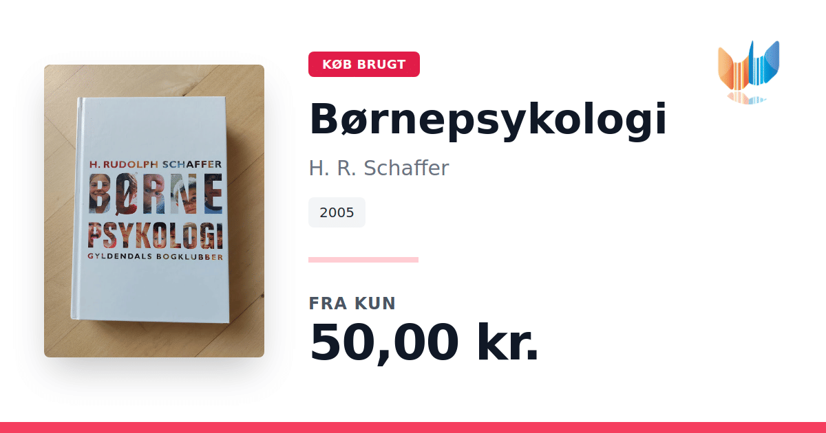Lige nu kan du købe "Børnepsykologi" af H. R. Schaffer til kun 50,00 kr. Bogen du ser her er brugt, og i god stand. Vi har i øjeblikket kun et enkelt eksemplar til salg af "Børnepsykologi", så slå til mens du kan!