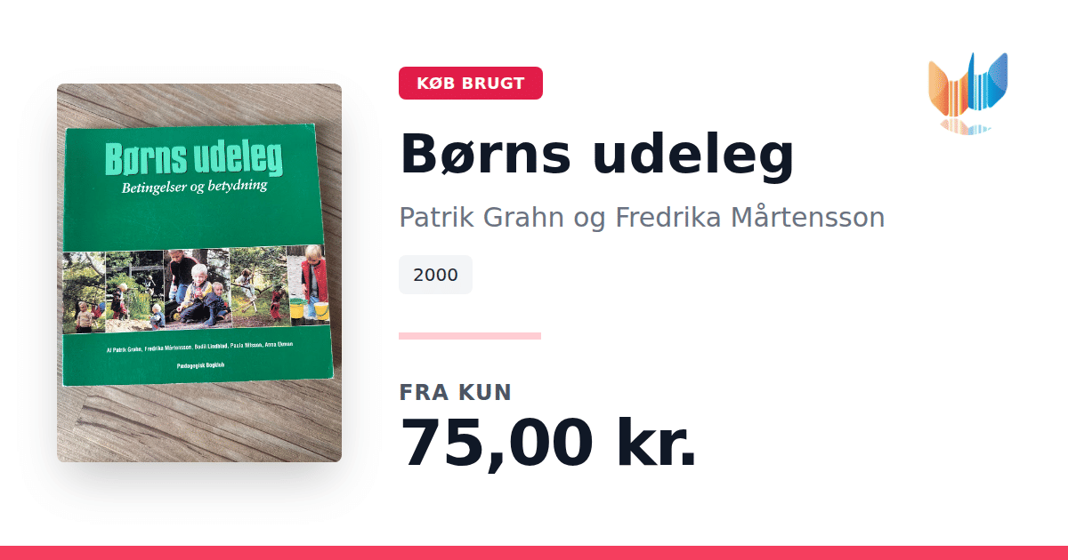 Lige nu kan du købe "Børns udeleg" af Patrik Grahn og Fredrika Mårtensson til kun 75,00 kr. Bogen du ser her er brugt, og i god stand. Vi har i øjeblikket kun et enkelt eksemplar til salg af "Børns udeleg", så slå til mens du kan!