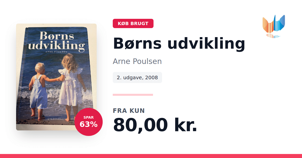Lige nu kan du købe "Børns udvikling" af Arne Poulsen til kun 80,00 kr. Du sparer hele 63% af nyprisen! Bogen du ser her er brugt, og i god stand. Vi har i øjeblikket kun et enkelt eksemplar til salg af "Børns udvikling", så slå til mens du kan!