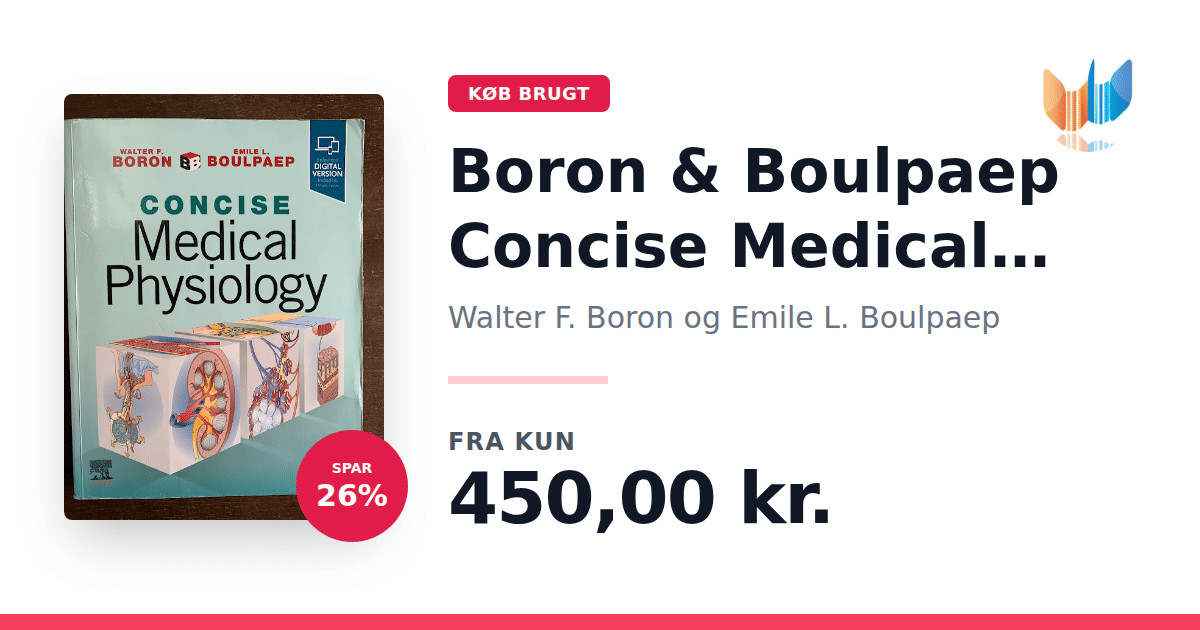 Lige nu kan du købe "Boron & Boulpaep Concise Medical Physiology" af Walter F. Boron og Emile L. Boulpaep til kun 450,00 kr. Du sparer hele 26% af nyprisen! Bogen du ser her er brugt, og i god stand. Vi har i øjeblikket kun et enkelt eksemplar til salg af "Boron & Boulpaep Concise Medical Physiology", så slå til mens du kan!