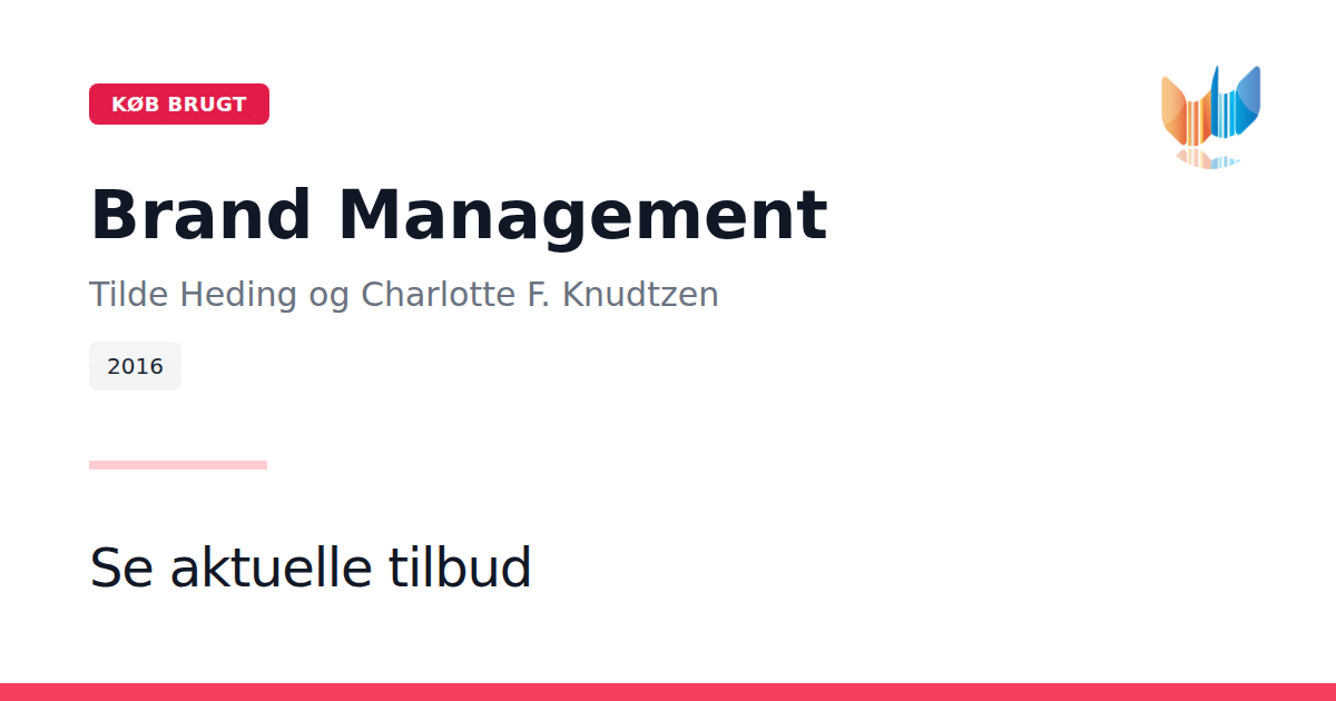 I Brand Management: Research, Theory and Practice fra 2016 præsenterer en grundig indføring i, hvorfor brandet gennem tre årtier er blevet anerkendt som en afgørende værdiskaber og strategisk prioritet. Trods fokus på brandets rolle forbliver dets egentlige definition ofte uklar - netop dét spørgsmål dykker forfatterne ned i fra første side. Bogen kortlægger de forskellige teoretiske retninger inden for brand management og giver et overblik over de væsentligste ’skoler’ og forskningsperspektiver, der har formet disciplinen de seneste tredive år. Hver tilgang præsenteres med en videnskabelig præcision, så læseren får indsigt i både baggrund og udvikling. Gennem en stringent analyse af de strategiske og ledelsesmæssige implikationer viser Tilde Heding, Charlotte F. Knudtzen og Mogens Bjerre, hvordan teori omsættes til praksis. Brand Management: Research, Theory and Practice er et uundværligt værk for studerende, forskere og ledere, der ønsker et solidt fundament i moderne brand management.