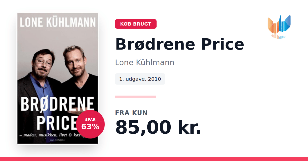 Lige nu kan du købe "Brødrene Price" af Lone Kühlmann til kun 85,00 kr. Du sparer hele 63% af nyprisen! Bogen du ser her er brugt, og i perfekt stand. Vi har i øjeblikket kun et enkelt eksemplar til salg af "Brødrene Price", så slå til mens du kan!