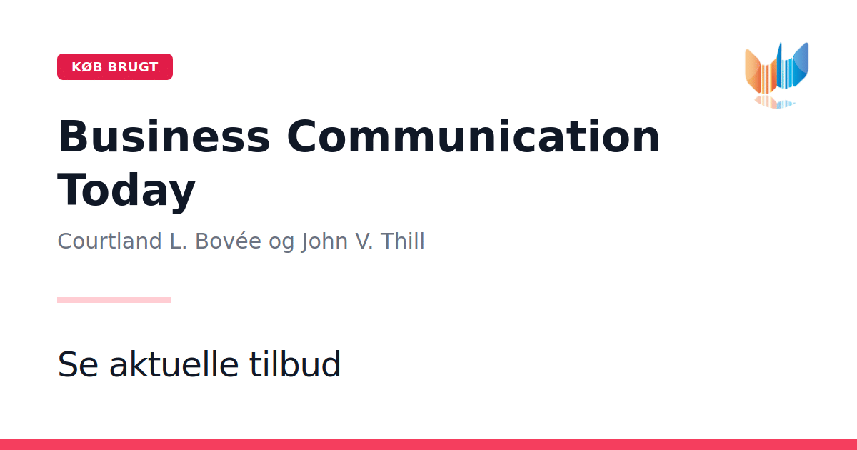 Business Communication Today fra 2013 er en omfattende grundbog på 641 sider i paperbackformat, skabt til universitetsstuderende såvel som nuværende og kommende fagfolk i erhvervslivet. Courtland L. Bovée og John V. Thill leverer praktisk træning, der tager udgangspunkt i nutidige og fremtidige udfordringer inden for forretningskommunikation. Som feltets førende lærebog i over to årtier kombinerer den solid teori med realistiske øvelser og cases, der skærper både skriftlige og mundtlige færdigheder. Gennem hele teksten får læseren konkrete værktøjer til at navigere i den komplekse verden af intern og ekstern kommunikation. Denne udgave præsenterer desuden en grundig gennemgang af den sociale kommunikationsmodel, som redefinerer relationerne mellem virksomheder og deres interessenter. Med cutting-edge indsigt i de nyeste tendenser tilbyder bogen et solidt fundament for effektiv og målrettet forretningskommunikation.
