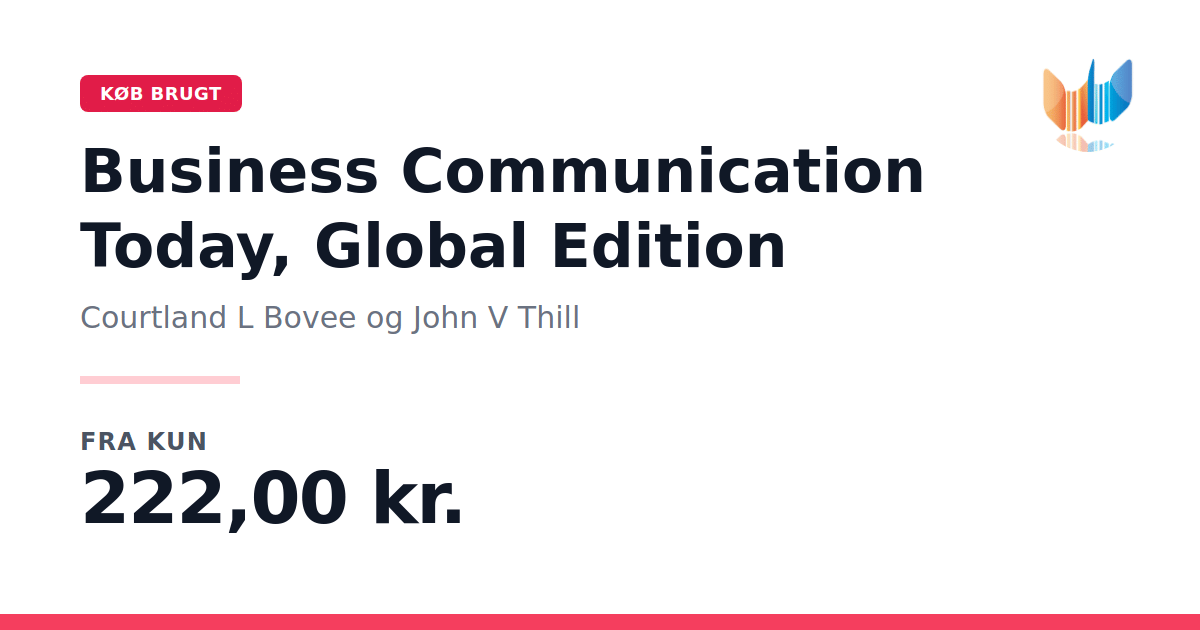 Business Communication Today, Global Edition (13. udgave, 2015) præsenterer de nyeste tendenser inden for virksomhedskommunikation på tværs af traditionelle og digitale kanaler. Bogen kombinerer grundlæggende teorier om pressemeddelelser og forretningsskrivning med indsigter i sociale medier og mobilkommunikation, så læseren får et helhedsorienteret syn på moderne kommunikationsværktøjer. Med sit stærke fokus på praksis henvender teksten sig både til studerende og til ansatte i alle typer organisationer. Gennem eksempler, øvelser og case-studier udvikler du dine evner til at skrive klart, lytte aktivt og præsentere professionelt - kernekompetencer, der er uundværlige i dagens konkurrenceprægede erhvervsliv. Den overskuelige struktur med flydende kapitler, opsummeringer og spørgeteknikker sikrer, at du tilegner dig og fastholder centrale begreber. Business Communication Today gør dig i stand til at mestre effektive kommunikationsstrategier og lykkes i et globalt forretningsmiljø.