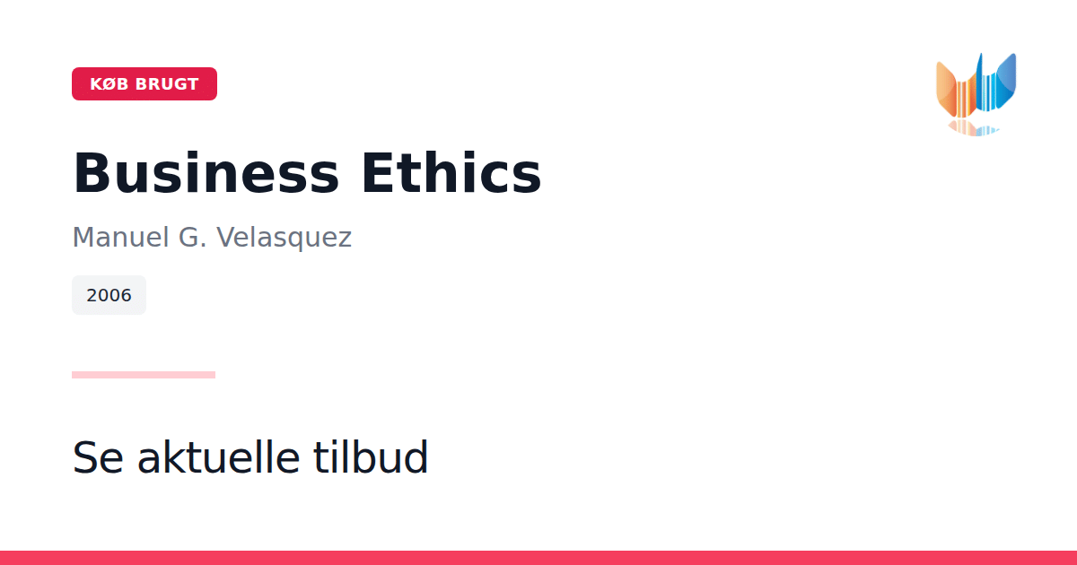 Business Ethics: Concepts & Cases af Manuel G. Velasquez (2006, 454 sider, paperback) giver en indføring i centrale begreber inden for forretningsetik gennem en kombination af teori og konkrete sager. Bogen præsenterer eksempler på etiske dilemmaer i virksomheder og inviterer til refleksion over ansvar, værdier og beslutningsprocesser. Medfølger en CD-ROM med ABC-nyhedssegmenter om Enrons kollaps, Unocal i Burma, aids i Afrika, Microsofts antitrust-sag, boredebatten, Ford/Firestone-krisen, Ralphs og Gaps arbejdsforhold. Et værdifuldt redskab for studerende, undervisere og alle med interesse for etiske udfordringer i erhvervslivet.