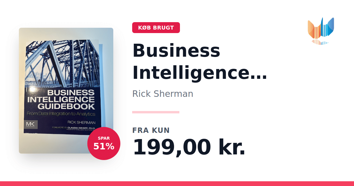 Lige nu kan du købe "Business Intelligence Guidebook" af Rick Sherman til kun 199,00 kr. Du sparer hele 51% af nyprisen! Bogen du ser her er brugt, og i perfekt stand. Vi har i øjeblikket kun et enkelt eksemplar til salg af "Business Intelligence Guidebook", så slå til mens du kan!