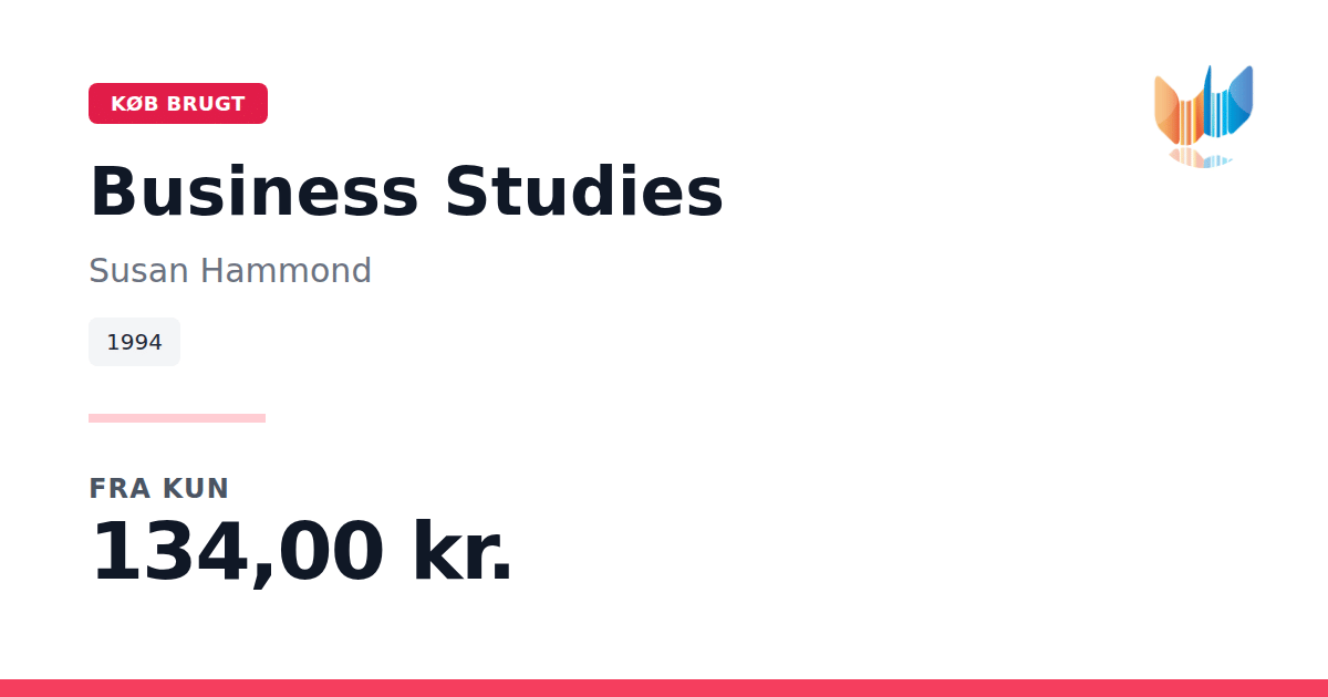Lige nu kan du købe "Business Studies" af Susan Hammond til kun 134,00 kr. Bogen du ser her er brugt, og i perfekt stand. Vi har i øjeblikket kun et enkelt eksemplar til salg af "Business Studies", så slå til mens du kan!