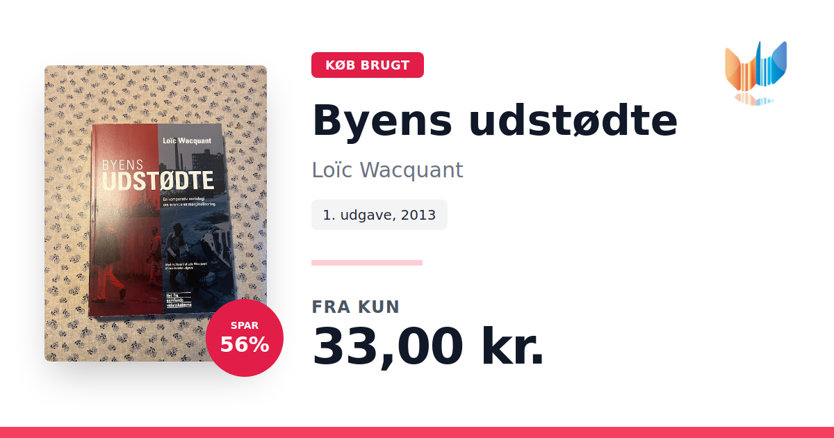 Lige nu kan du købe "Byens udstødte" af Loïc Wacquant til kun 33,00 kr. Du sparer hele 56% af nyprisen! Bogen du ser her er brugt, og i perfekt stand. Vi har i øjeblikket kun et enkelt eksemplar til salg af "Byens udstødte", så slå til mens du kan!