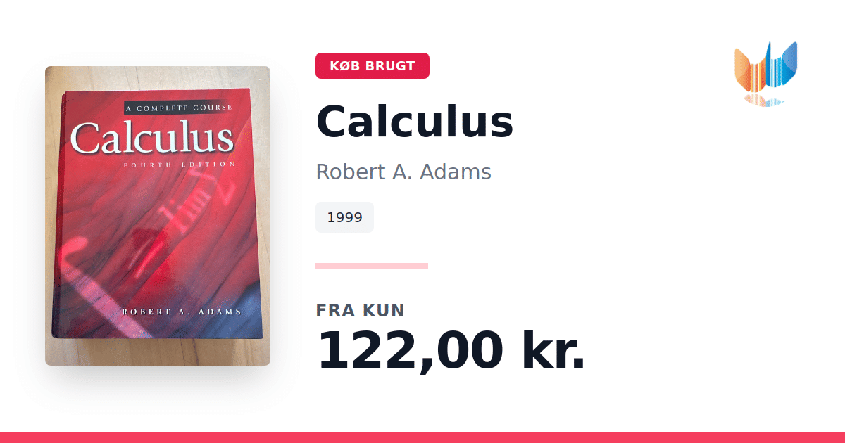 Lige nu kan du købe "Calculus" af Robert A. Adams til kun 122,00 kr. Bogen du ser her er brugt, og i god stand. Vi har i øjeblikket 8 eksemplarer til salg af "Calculus", så husk at se de forskellige udgaver.