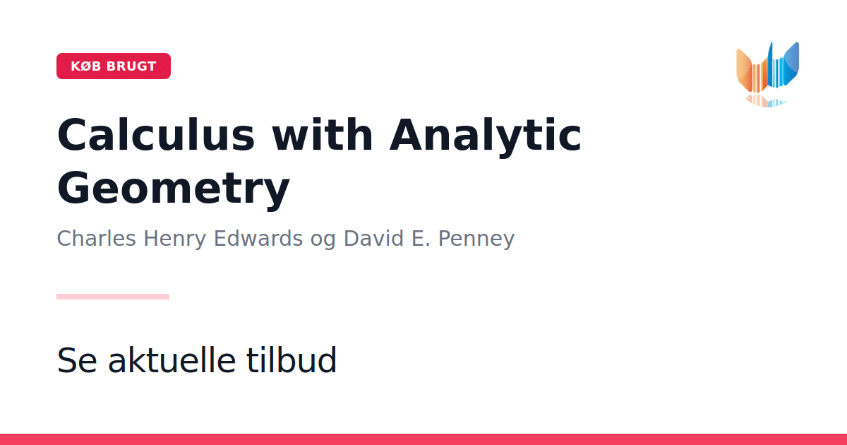 Calculus with Analytic Geometry af Charles Henry Edwards og David E. Penney er en revideret grundtekst til indledende kurser i differential- og integralregning for naturvidenskabelige og ingeniørfaglige studier. Den kombinerer en solid teoretisk indføring med udførlige opgavesamlinger og eksempler hentet fra virkelighedens udfordringer. Bogen byder på teknologi- og designprojekter, som bygger på centrale kalkulusbegreber, og gennemgår afledningen af alle seks trigonometriske funktioner. Afsnit om først- og højereordens afledte, herunder konkavitet, er omstruktureret og strømlinet for at give klarere og mere overskuelige fremstillinger. Samtidig er materialet om integralregning og dens anvendelser reorganiseret, så det understøtter både forståelse og anvendelse. Kapitlet om uendelige rækker er genopbygget med mindre vægt på konvergenstests og større fokus på overblik og anvendelse. Der introduceres desuden elementære differentialligninger med eksempler på praktiske anvendelser. Hvert kapitel åbner med en historisk eller biografisk note, og det omfattende udvalg af øvelsesopgaver sikrer, at læseren får både indsigt og rutine i faget.