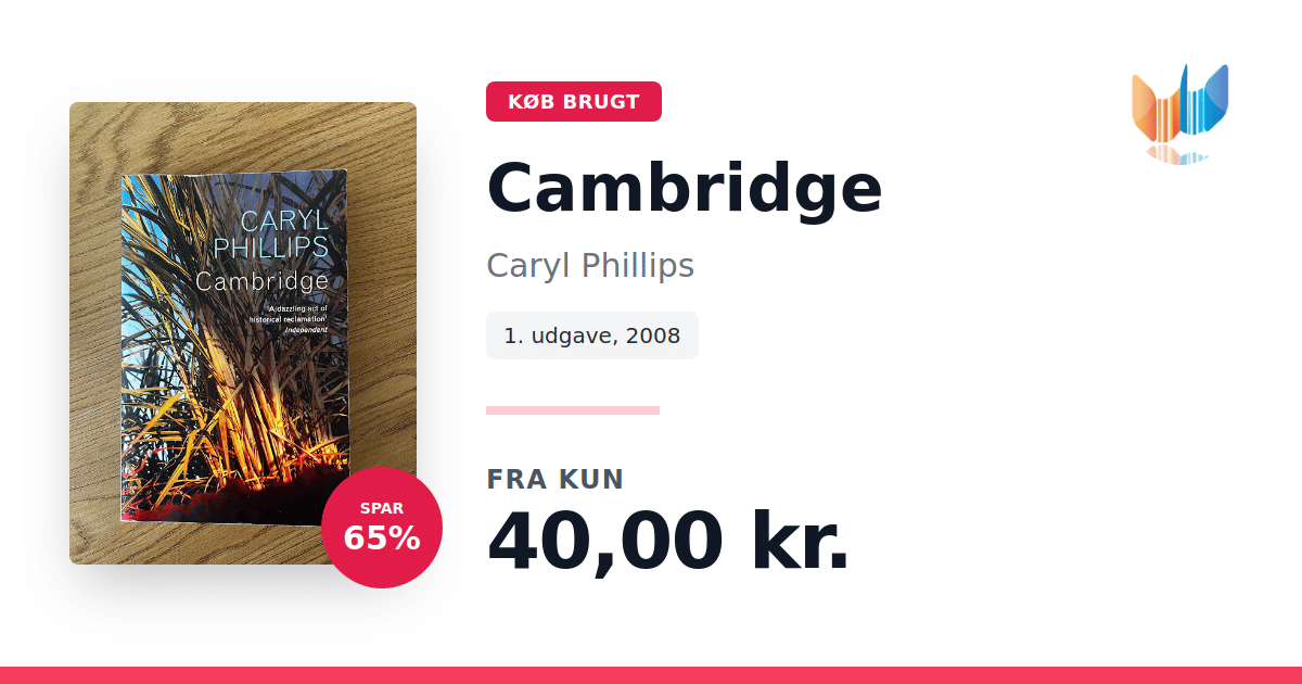 Lige nu kan du købe "Cambridge" af Caryl Phillips til kun 40,00 kr. Du sparer hele 65% af nyprisen! Bogen du ser her er brugt, og i perfekt stand. Vi har i øjeblikket kun et enkelt eksemplar til salg af "Cambridge", så slå til mens du kan!