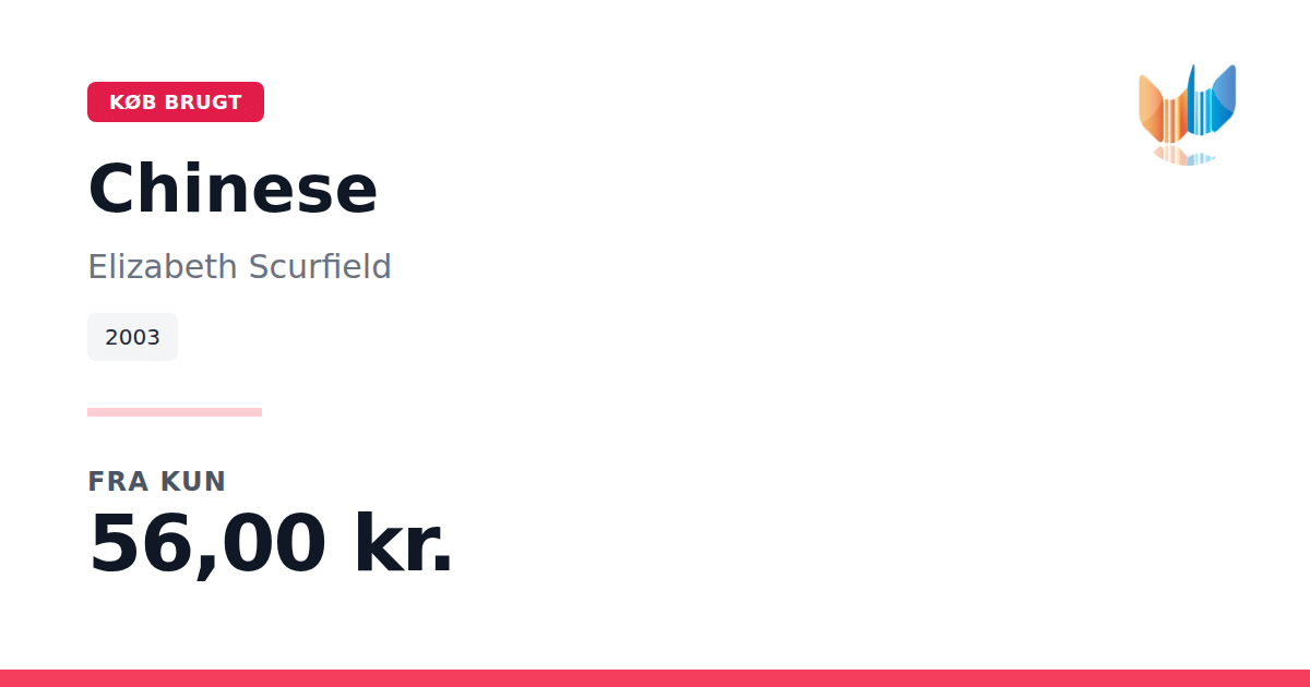 Lige nu kan du købe "Chinese" af Elizabeth Scurfield til kun 56,00 kr. Bogen du ser her er brugt, og i perfekt stand. Vi har i øjeblikket kun et enkelt eksemplar til salg af "Chinese", så slå til mens du kan!
