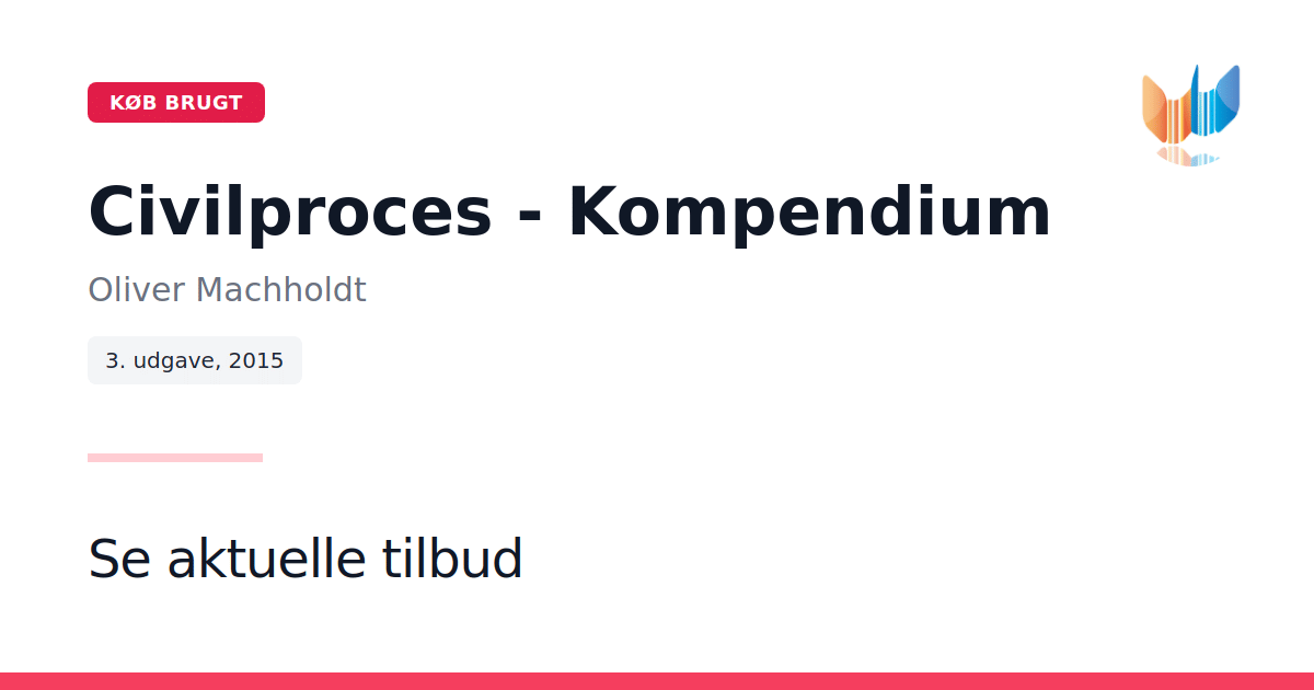 Civilproces - Kompendium giver en grundig gennemgang af centrale emner inden for civil retssag, hvor du blandt andet får et indblik i domstolssystemets opbygning og de aktører, der indgår i en civil sag. Bogen behandler, hvilke sager domstolene kan tage hånd om, samt de saglige, stedlige og internationale kompetencer, der gælder. Kompendiet går detaljeret til værks med sagens gang i første instans og omfatter emner som småsagsproces, betalingspåkrav, præklusion, udeblivelse og behandlingen af flere krav samlet. Derudover belyser værket vigtige aspekter som bevisførelse, sagsomkostninger, appel, retskraft og mulighederne for at vælge voldgift. Stoffet er ajourført med lovændringer til og med februar 2015. Selvom kompendiet er primært baseret på Den civile retspleje, 3. udgave, er indholdet systematiseret på en selvstændig måde, så det er et anvendeligt redskab for alle studerende, der beskæftiger sig med civilproces – uafhængigt af hvilket lærebogsgrundlag de benytter. Forfatteren, Oliver Machholdt, bidrager med sin juridiske ekspertise som advokat hos Kromann Reumert.
