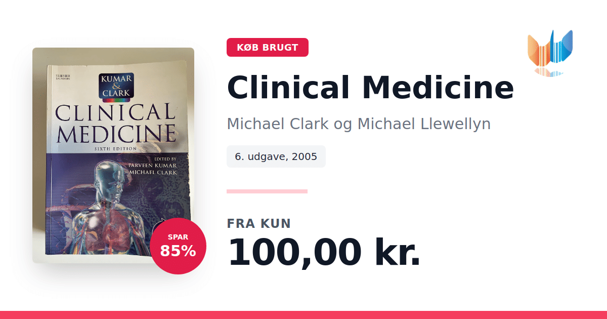Lige nu kan du købe "Clinical Medicine" af Michael Clark og Michael Llewellyn til kun 100,00 kr. Du sparer hele 85% af nyprisen! Bogen du ser her er brugt, og i god stand. Vi har i øjeblikket kun et enkelt eksemplar til salg af "Clinical Medicine", så slå til mens du kan!