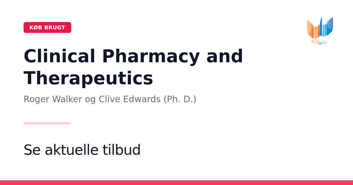 Clinical Pharmacy and Therapeutics af Roger Walker og Clive Edwards er et omfattende lærebogsværk udgivet i 2003 som paperback på 937 sider. Denne bog tilbyder en grundig indføring i klinisk farmaci og terapeutiske principper med særlig vægt på det apotekariske perspektiv. Teksten er systematisk opbygget omkring organsystemer og sygdomstilstande og gennemgår alt fra farmakokinetik og farmakodynamik til lægemiddelvalg, doseringsstrategier og bivirkningshåndtering. Kombinationen af teoretisk viden og praktiske kliniske eksempler gør den uundværlig for studerende og fagfolk inden for medicin og farmaci.