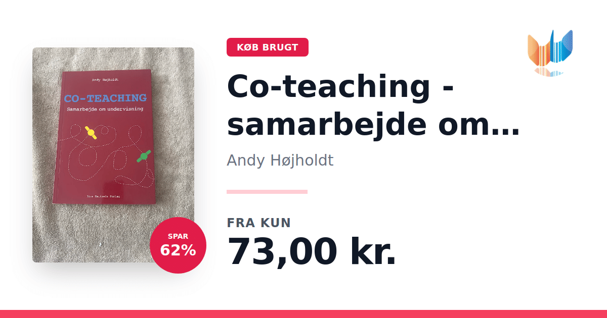 Lige nu kan du købe "Co-teaching - samarbejde om undervisning" af Andy Højholdt til kun 73,00 kr. Du sparer hele 62% af nyprisen! Bogen du ser her er brugt, og i perfekt stand. Vi har i øjeblikket 3 eksemplarer til salg af "Co-teaching - samarbejde om undervisning", så husk at se de forskellige udgaver.