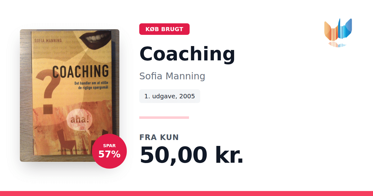 Lige nu kan du købe "Coaching" af Sofia Manning til kun 50,00 kr. Du sparer hele 57% af nyprisen! Bogen du ser her er brugt, og i perfekt stand. Vi har i øjeblikket 2 eksemplarer til salg af "Coaching", så husk at se de forskellige udgaver.