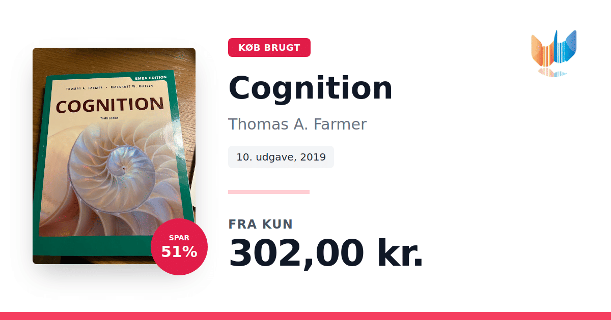 Lige nu kan du købe "Cognition" af Thomas A. Farmer til kun 302,00 kr. Du sparer hele 51% af nyprisen! Bogen du ser her er brugt, og i god stand. Vi har i øjeblikket kun et enkelt eksemplar til salg af "Cognition", så slå til mens du kan!