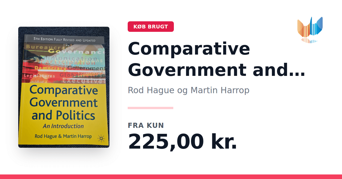Lige nu kan du købe "Comparative Government and Politics" af Rod Hague og Martin Harrop til kun 225,00 kr. Bogen du ser her er brugt, og i perfekt stand. Vi har i øjeblikket 2 eksemplarer til salg af "Comparative Government and Politics", så husk at se de forskellige udgaver.
