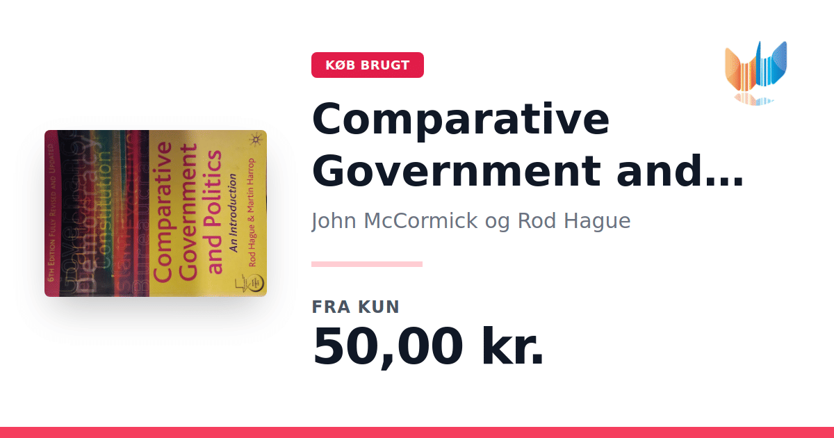 Lige nu kan du købe "Comparative Government and Politics" af John McCormick og Rod Hague til kun 50,00 kr. Bogen du ser her er brugt, og i perfekt stand. Vi har i øjeblikket 2 eksemplarer til salg af "Comparative Government and Politics", så husk at se de forskellige udgaver.