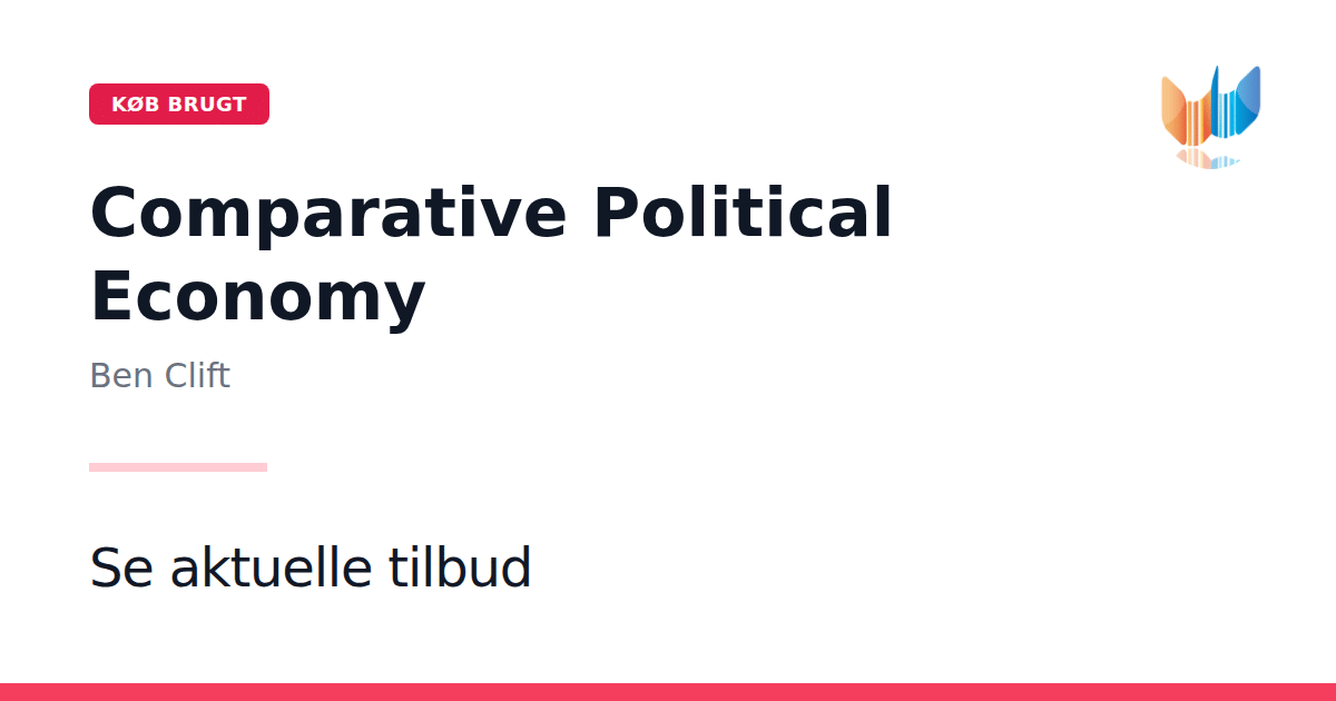 Denne omfattende lærebog giver de nødvendige analytiske redskaber til at forstå og fortolke den avancerede kapitalismes udvikling i kølvandet på den globale finanskrise. Ved at fokusere på staters, markeders og global kapitalismes samspil fremhæver Ben Clift, hvordan politiske interventioner og økonomiske kræfter gensidigt former hinanden. Bogen placerer komparativ politisk økonomi i centrum af de klassiske og moderne teoretiske debatter inden for Political Economy. Den kortlægger feltets udvikling, centrale begreber og metodiske tilgange, så læseren får et klart overblik over både substans og historie i komparative studier. Med et systematisk blik forbinder teksten komparativ politisk økonomi med International Political Economy. Clift argumenterer for en frugtbar udveksling mellem de to underfelter, idet han viser, hvordan grænserne mellem dem bliver stadig mere flydende i en globaliseret verden. Målgruppen er overvejende avancerede bachelor- og kandidatstuderende, men også studerende inden for mere generelle politik- eller internationale relations-studier vil finde denne tekst uundværlig. Comparative Political Economy rejser nye spørgsmål og tilbyder en helhedsorienteret gennemgang, der genoplivet debatten om økonomiens og statens rolle i det 21. århundrede.