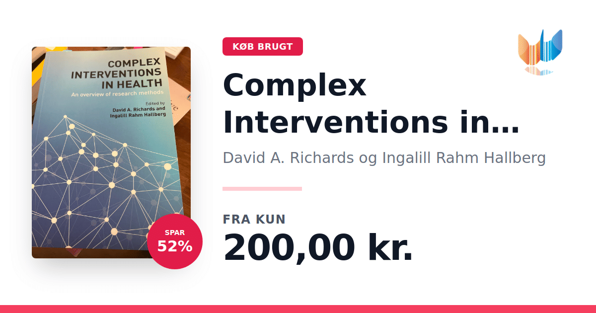 Lige nu kan du købe "Complex Interventions in Health" af David A. Richards og Ingalill Rahm Hallberg til kun 200,00 kr. Du sparer hele 54% af nyprisen! Bogen du ser her er brugt, og i god stand. Vi har i øjeblikket 2 eksemplarer til salg af "Complex Interventions in Health", så husk at se de forskellige udgaver.