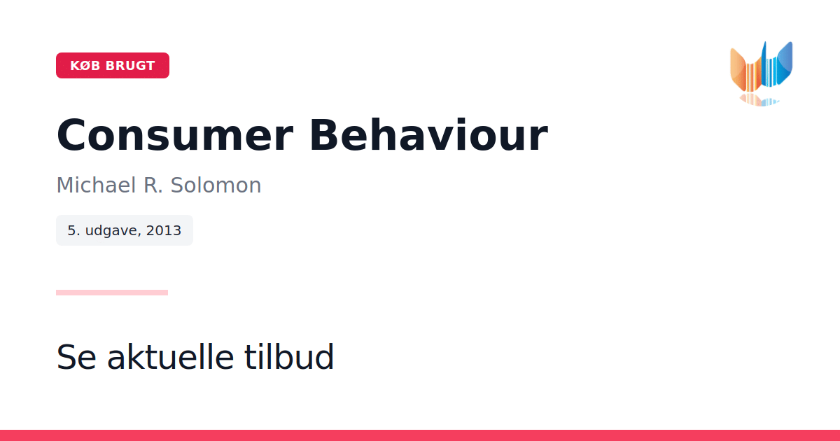 Consumer Behaviour præsenterer i sin 5. udgave (2013) en levende og grundig introduktion til forbrugeradfærd. Michael R. Solomon kombinerer centrale teorier med konkrete eksempler på de daglige udfordringer, marketingansvarlige står overfor. Den klare struktur gør det nemt at følge både klassiske modeller og nyere tendenser. Med 704 sider fordelt på paperback er bogen designet til at engagere læseren gennem en afvekslende blanding af cases, øvelser og illustrative figurer. Fokus ligger på både psykologiske drivkræfter, sociale påvirkninger og kulturelle mønstre, så man opnår et helhedsbillede af forbrugernes beslutningsprocesser. Consumer Behaviour henvender sig primært til 2. og 3. års studerende på marketing- og erhvervsøkonomiske uddannelser, men vil også være en værdifuld opslagsbog for konsulenter, praktikere og alle, der arbejder med forbrugeradfærd.