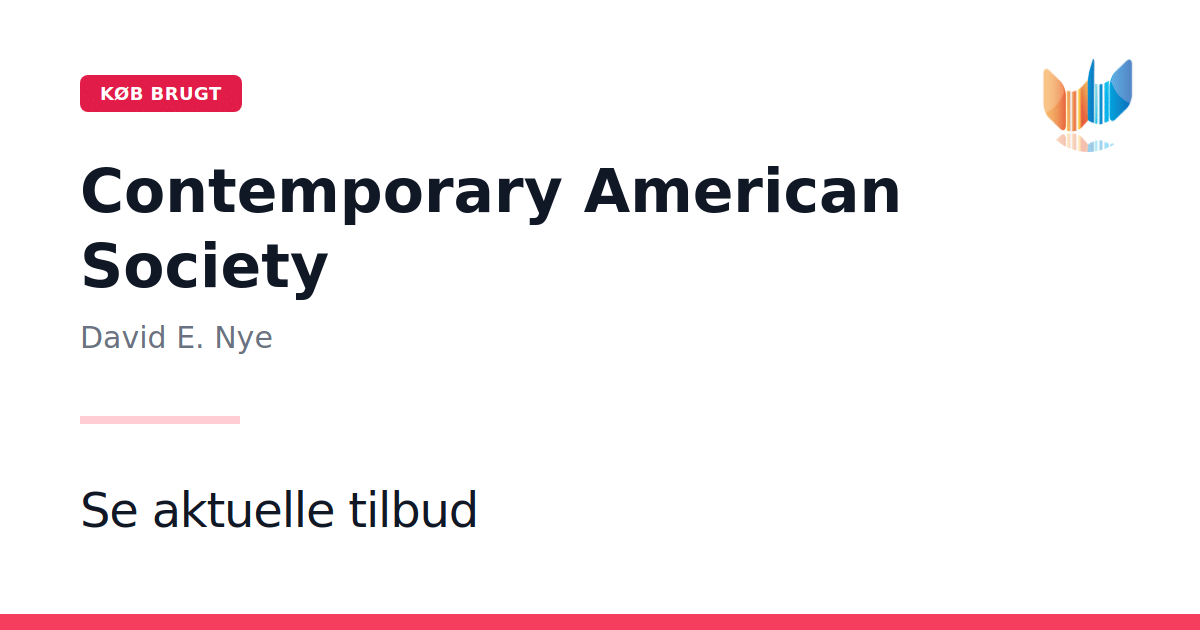 Contemporary American Society af David E. Nye giver en grundig og nuanceret introduktion til USA’s samfundsudvikling i begyndelsen af det nye årtusinde. Med udgangspunkt i de uforudsete omvæltninger siden præsidentvalget i 2000 belyser Nye, hvordan politiske, økonomiske og sociale strukturer har ændret sig i takt med en verdensomspændende turbulens. I denne udgave inddrages afslutningen på den såkaldte "nye økonomi" og de mange afledte konsekvenser, som følger for arbejdsmarked, kultur og borgerinddragelse. Gennem skarpe analyser og konkret empiri kortlægges de kræfter, der former moderne amerikansk samfundsliv. Bogen er let tilgængelig for studerende og undervisere inden for samfundsvidenskab, men også relevant for alle, der ønsker et indblik i de dynamikker, der præger Contemporary American Society.
