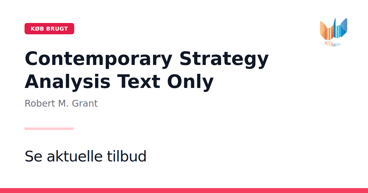 Robert M. Grant formår i Contemporary Strategy Analysis Text Only at forene et klart og tilgængeligt sprog med dyb indsigt i, hvordan virksomheder skaber værdi og omsætter teori til praksis. Denne udgave henvender sig til studerende og praktikere, der ønsker en grundig, men samtidig håndgribelig indføring i strategisk analyse. Ud over de klassiske strategiske greb har den nye udgave udbygget fokus på platformbaseret konkurrence og de økosystemer, som opstår på tværs af beslægtede industrier. Desuden undersøges indgående de processer og arbejdsgange, der knytter sig til udvikling og forankring af effektive strategier. Et centralt tema er også virksomheders valg af alliancer, fusioner og opkøb som midler til vækst og konkurrencefordel. Slutteligt lægges der særlig vægt på, hvordan strategien implementeres og tilpasses, så den skaber målbare resultater.