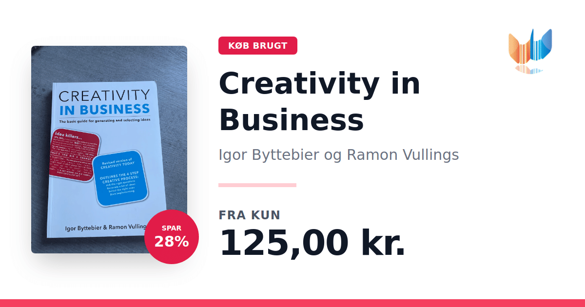 Lige nu kan du købe "Creativity in Business" af Igor Byttebier og Ramon Vullings til kun 125,00 kr. Du sparer hele 28% af nyprisen! Bogen du ser her er brugt, og i god stand. Vi har i øjeblikket kun et enkelt eksemplar til salg af "Creativity in Business", så slå til mens du kan!