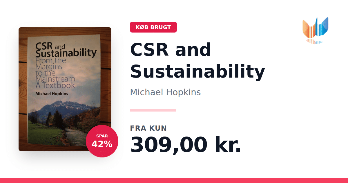 Lige nu kan du købe "CSR and Sustainability" af Michael Hopkins til kun 309,00 kr. Du sparer hele 42% af nyprisen! Bogen du ser her er brugt, og i perfekt stand. Vi har i øjeblikket kun et enkelt eksemplar til salg af "CSR and Sustainability", så slå til mens du kan!