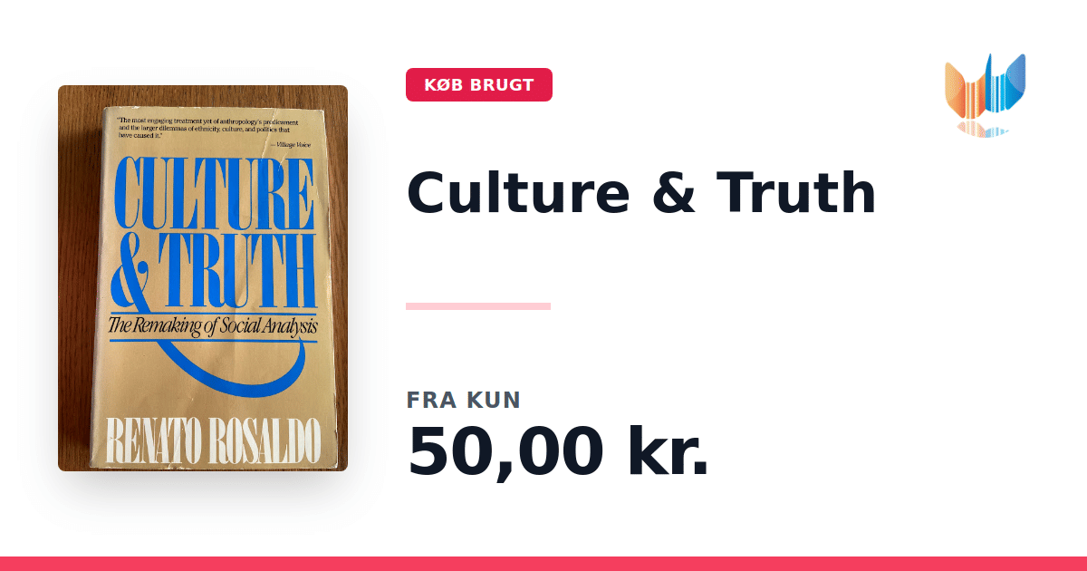 Lige nu kan du købe "Culture & Truth" til kun 50,00 kr. Bogen du ser her er brugt, og i god stand. Vi har i øjeblikket kun et enkelt eksemplar til salg af "Culture & Truth", så slå til mens du kan!