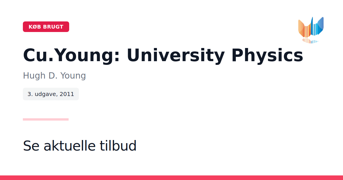 University Physics 13. udgave leveres i to bind og omfatter både moderne fysik og eText. Denne særligt tilpassede udgave præsenterer den anerkendte grundbog af Hugh D. Young og Roger A. Freedman, udgivet af Pearson Learning Solutions i 2011. Bogen er berømt for sit brede og dybtgående udvalg af gennemarbejdede eksempler, der understøtter både forståelse og problemløsning. I denne udgave er alle eksempler og problemløsningsstrategier blevet revideret for at være mere præcise og direkte, mens den strukturerede tilgang og fokuset på matematisk modellering bevares. Som noget nyt introduceres "Bridging Problems" i hvert kapitel. Disse udfordrende, tværgående opgaver ledsages af en skeletløsning bestående af spørgsmål og hints, som guider læseren gennem komplekse overvejelser. Øvelsesopgaverne er udbygget med flere beregningskrævende og biomedicinsk orienterede spørgsmål. Revisionen er baseret på detaljeret national performance-data indsamlet via MasteringPhysics®, hvilket sikrer en nøje tilpasset sværhedsgrad og effektivitet. De enkle, men forklarende illustrationer i en klar grafisk stil er forsynet med annoteringer, der hjælper med at fremme indlæringen og belyse fysikkens grundprincipper.