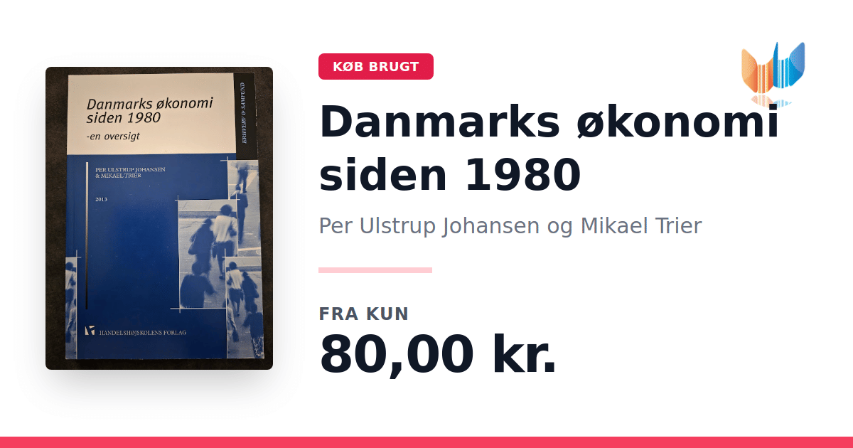 Lige nu kan du købe "Danmarks økonomi siden 1980" af Per Ulstrup Johansen og Mikael Trier til kun 80,00 kr. Bogen du ser her er brugt, og i perfekt stand. Vi har i øjeblikket 4 eksemplarer til salg af "Danmarks økonomi siden 1980", så husk at se de forskellige udgaver.