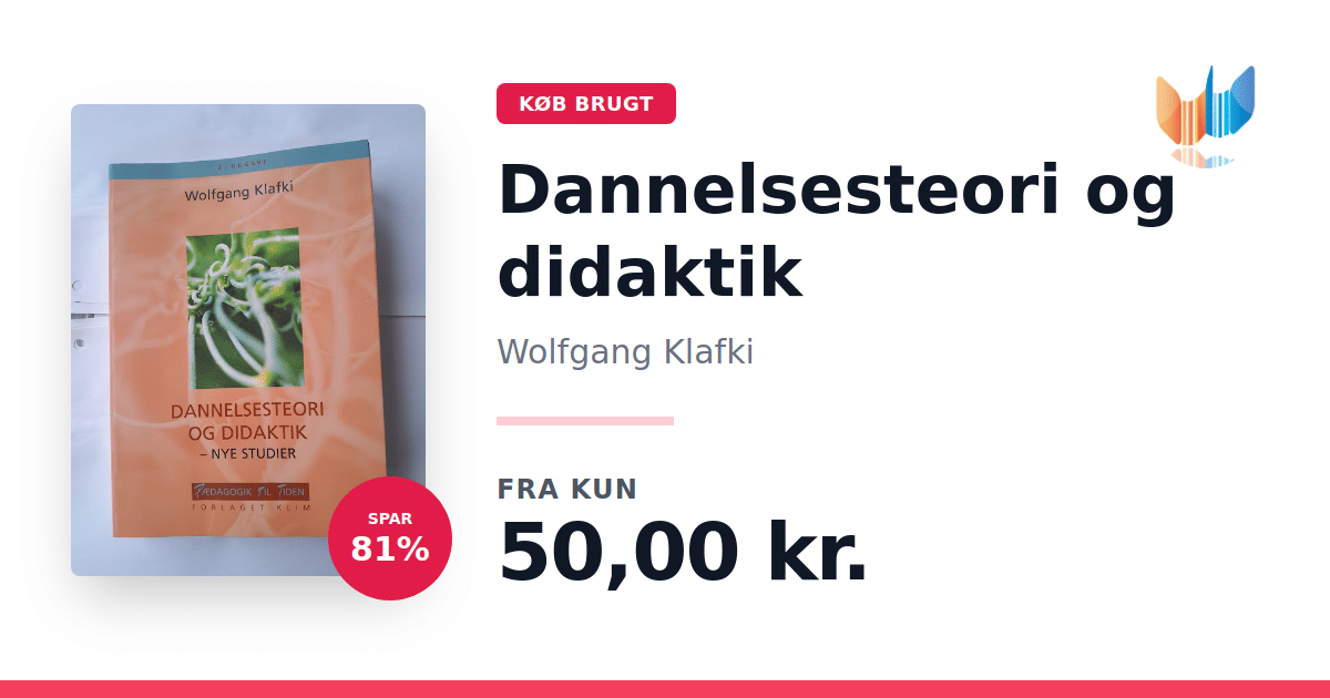 Lige nu kan du købe "Dannelsesteori og didaktik" af Wolfgang Klafki til kun 50,00 kr. Du sparer hele 81% af nyprisen! Bogen du ser her er brugt, og i god stand. Vi har i øjeblikket 2 eksemplarer til salg af "Dannelsesteori og didaktik", så husk at se de forskellige udgaver.