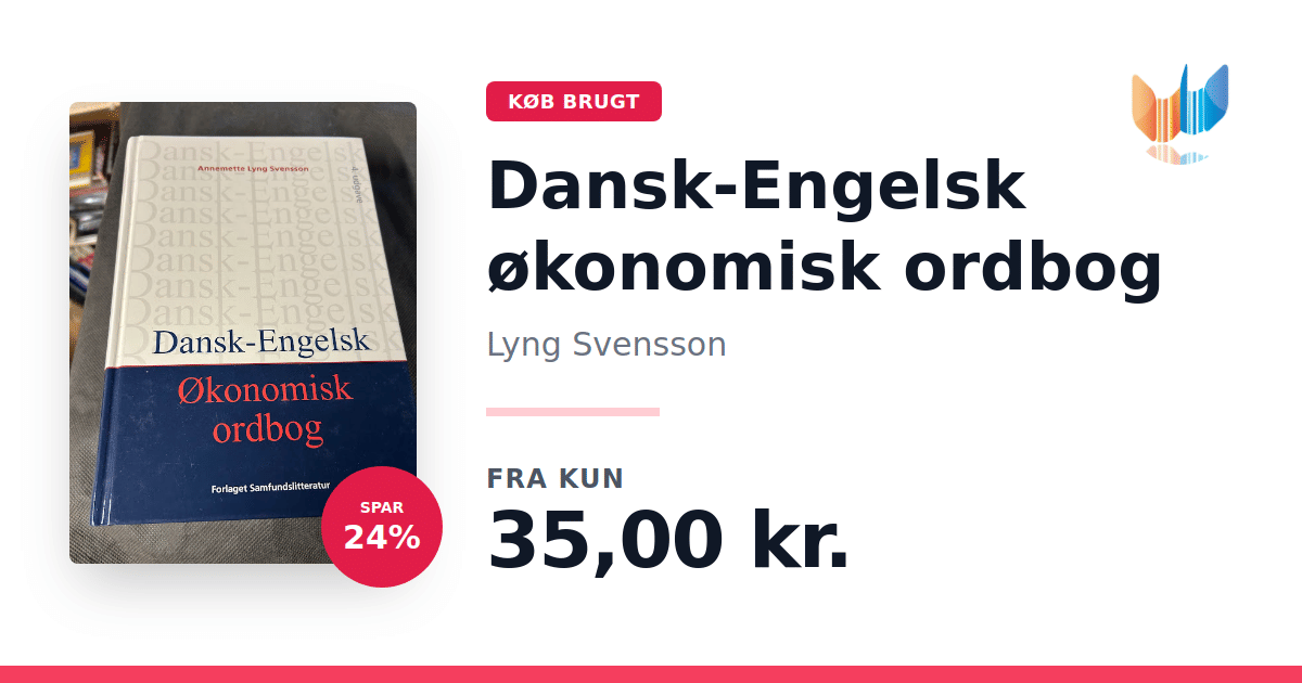 Lige nu kan du købe "Dansk-Engelsk økonomisk ordbog" af Lyng Svensson til kun 35,00 kr. Du sparer hele 24% af nyprisen! Bogen du ser her er brugt, og i god stand. Vi har i øjeblikket 2 eksemplarer til salg af "Dansk-Engelsk økonomisk ordbog", så husk at se de forskellige udgaver.