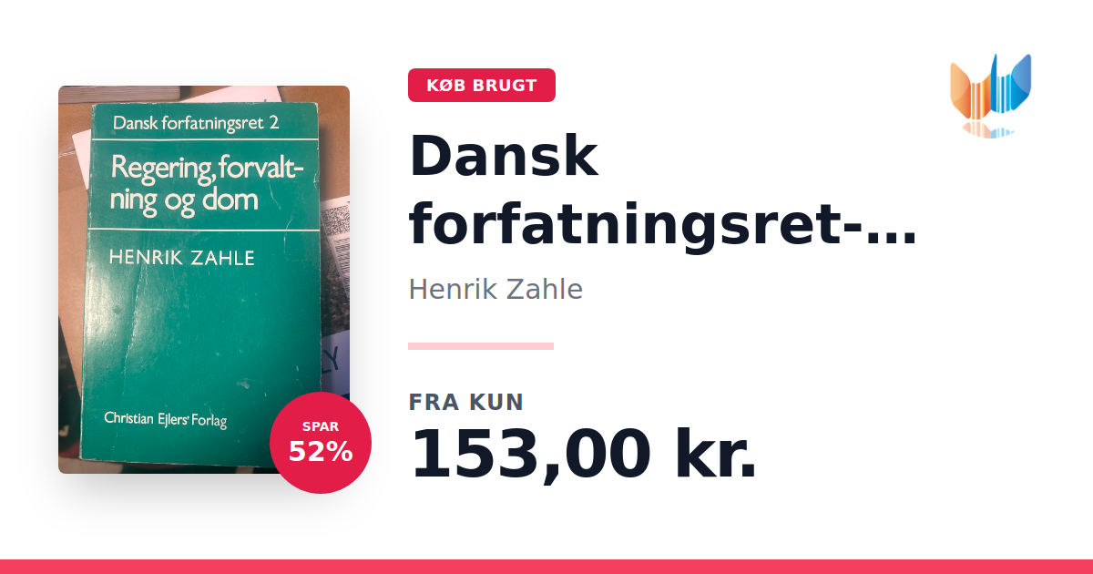 Henrik Zahles "Dansk forfatningsret – Regering, forvaltning og dom: Institutioner og regulering" giver et grundigt indblik i de konstitutionelle rammer, der former statens organer. Bogen redegør for centrale principper, der ligger til grund for regeringens, forvaltningens og domstolenes virke, og den undersøger, hvordan institutionerne og reguleringen spiller sammen i det danske forfatningssystem. I sin tredje udgave fra 2001 er dette værk et uundværligt redskab for både studerende og professionelle inden for forfatningsret. Med sine 336 sider byder bogen på en klar og systematisk gennemgang af de væsentligste emner og juridiske problemstillinger, hvilket gør den til en vigtig reference i arbejdet med danske forfatningsforhold.