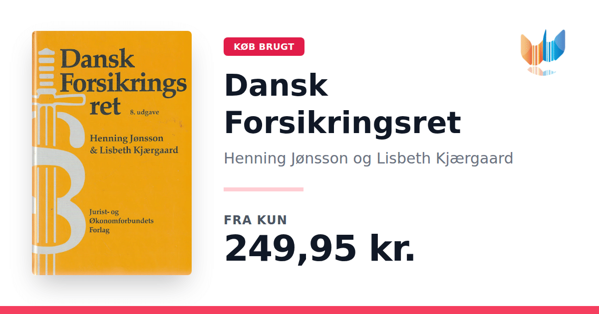 Lige nu kan du købe "Dansk Forsikringsret" af Henning Jønsson og Lisbeth Kjærgaard til kun 249,95 kr. Bogen du ser her er brugt, og i perfekt stand. Vi har i øjeblikket kun et enkelt eksemplar til salg af "Dansk Forsikringsret", så slå til mens du kan!