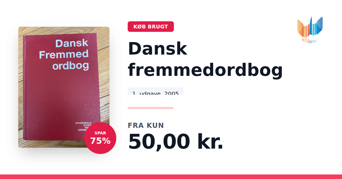 Lige nu kan du købe "Dansk fremmedordbog" til kun 50,00 kr. Du sparer hele 75% af nyprisen! Bogen du ser her er brugt, og i perfekt stand. Vi har i øjeblikket kun et enkelt eksemplar til salg af "Dansk fremmedordbog", så slå til mens du kan!