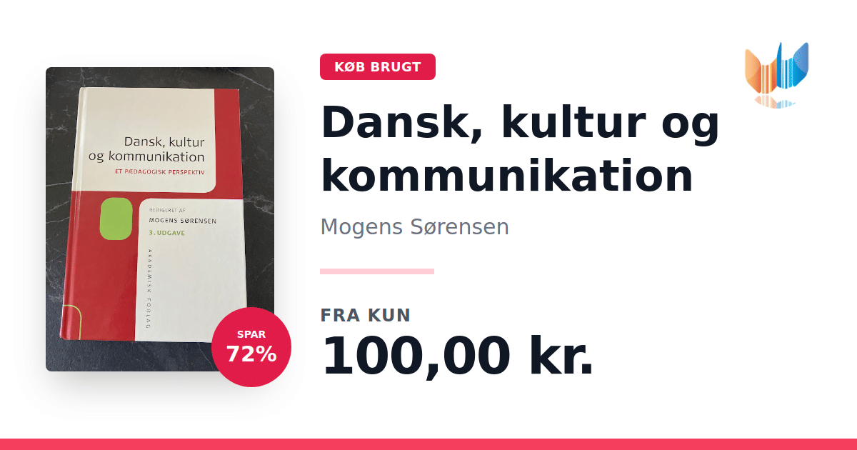 Lige nu kan du købe "Dansk, kultur og kommunikation" af Mogens Sørensen til kun 100,00 kr. Du sparer hele 72% af nyprisen! Bogen du ser her er brugt, og i god stand. Vi har i øjeblikket kun et enkelt eksemplar til salg af "Dansk, kultur og kommunikation", så slå til mens du kan!