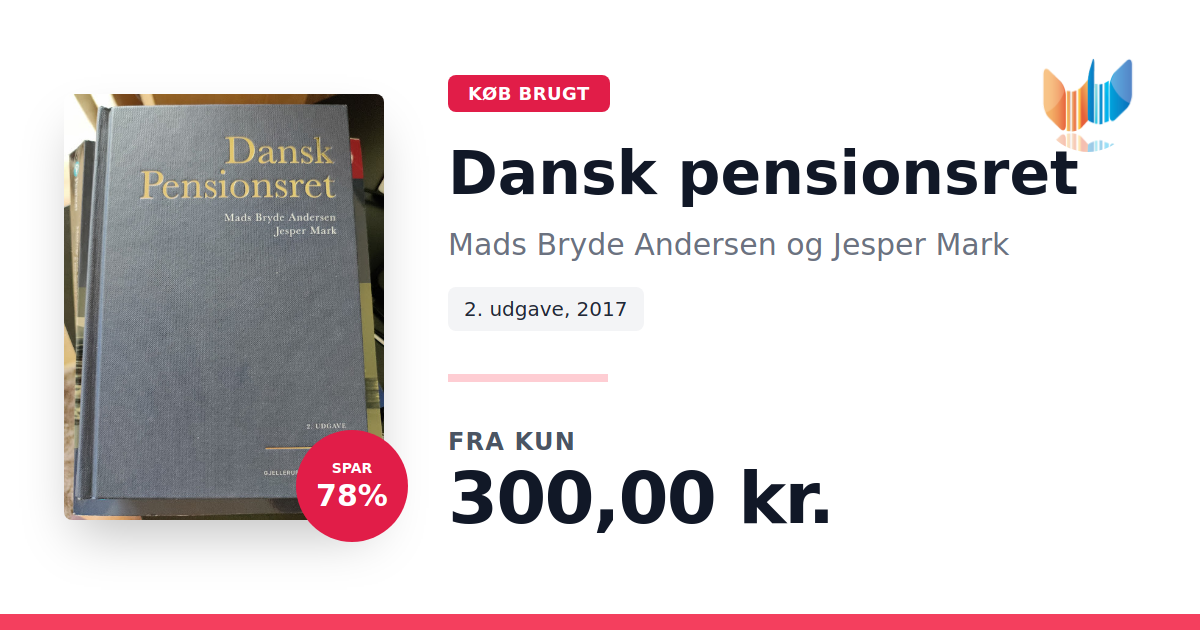 Lige nu kan du købe "Dansk pensionsret" af Mads Bryde Andersen og Jesper Mark til kun 300,00 kr. Du sparer hele 78% af nyprisen! Bogen du ser her er brugt, og i perfekt stand. Vi har i øjeblikket kun et enkelt eksemplar til salg af "Dansk pensionsret", så slå til mens du kan!