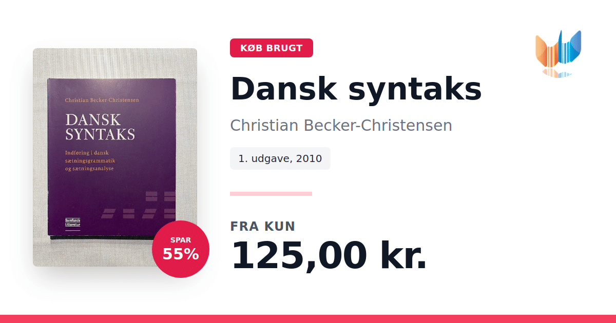 Lige nu kan du købe "Dansk syntaks" af Christian Becker-Christensen til kun 125,00 kr. Du sparer hele 55% af nyprisen! Bogen du ser her er brugt, og i god stand. Vi har i øjeblikket kun et enkelt eksemplar til salg af "Dansk syntaks", så slå til mens du kan!