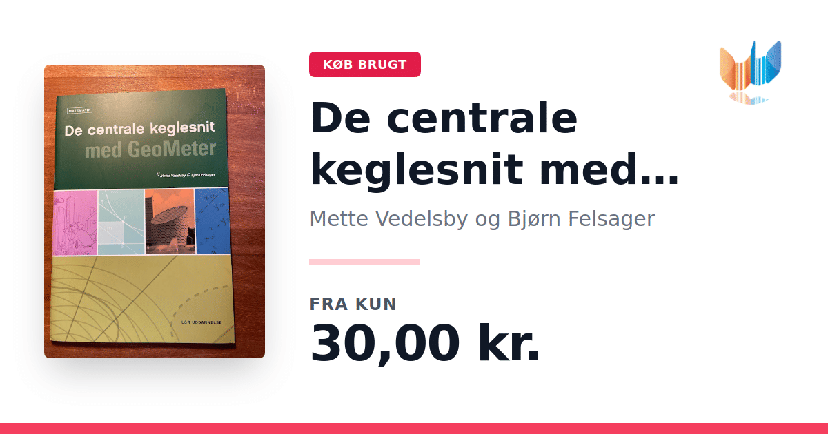Lige nu kan du købe "De centrale keglesnit med GeoMeter" af Mette Vedelsby og Bjørn Felsager til kun 30,00 kr. Bogen du ser her er brugt, og i perfekt stand. Vi har i øjeblikket kun et enkelt eksemplar til salg af "De centrale keglesnit med GeoMeter", så slå til mens du kan!