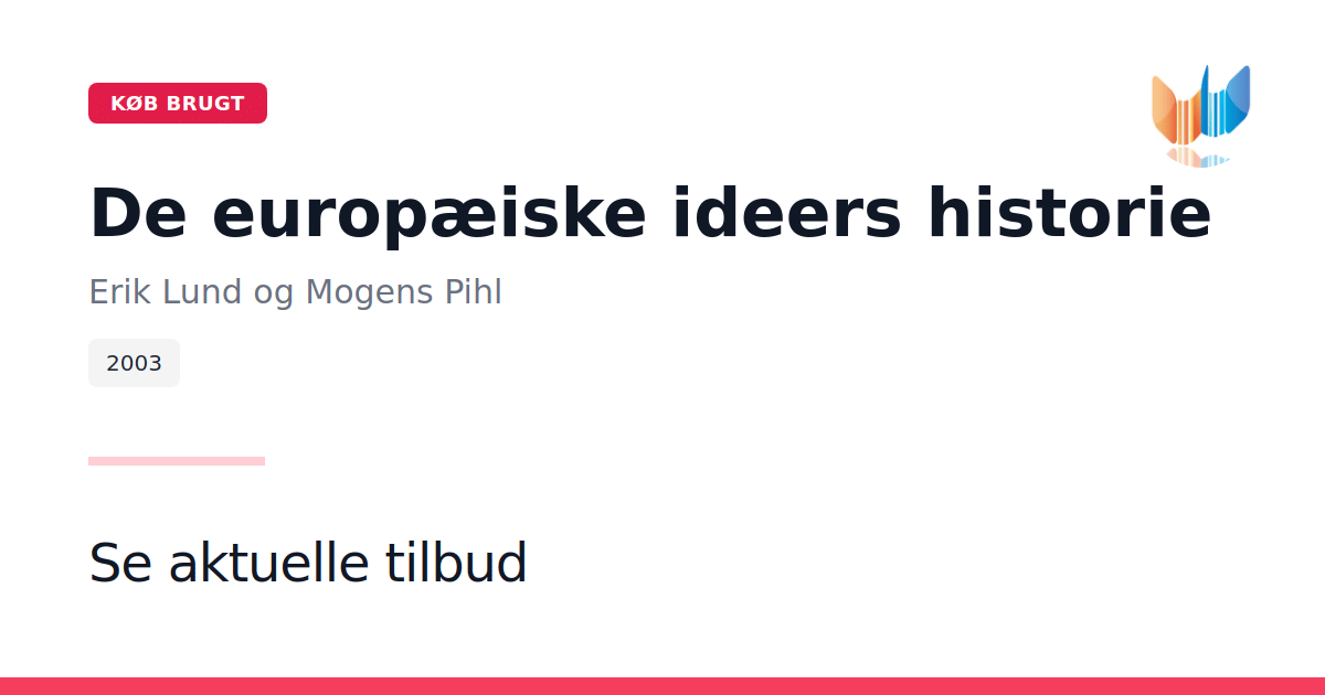 I De europæiske ideers historie præsenterer Erik Lund, Mogens Pihl og Johannes Sløk de tanker og forestillinger, som mennesker i Europa har gjort sig siden Israel og Hellas om verdens beskaffenhed, om menneskets væsen og om dets forhold til sig selv og til andre mennesker. Med et sammenhængende overblik udfolder forfatterne udviklingen af disse idéer gennem årtusinder. Bogen er en indsigtsfuld rejse i Europas intellektuelle arv og giver et dybdegående indblik i de forestillinger, der har formet den europæiske tænkning.